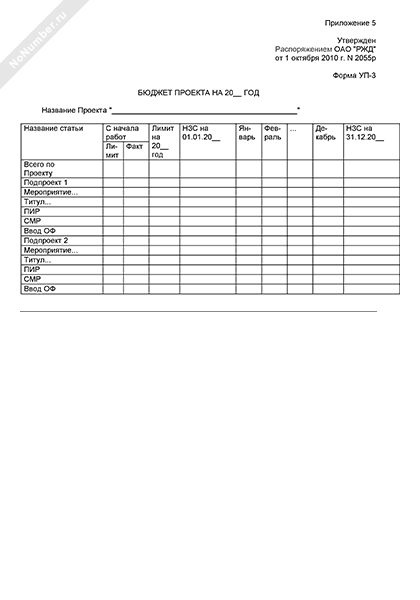 - 3915Бюджет инвестиционного проекта ОАО «Российские железные дороги». Форма № УП-3