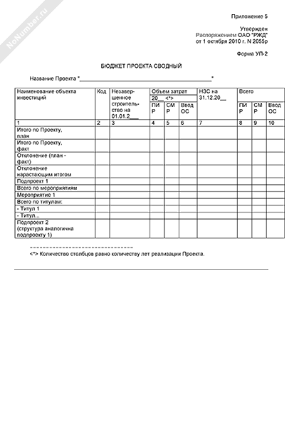 - 3914Бюджет инвестиционного проекта ОАО «Российские железные дороги» сводный. Форма № УП-2