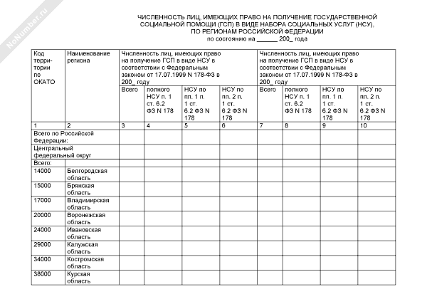 - 3903Численность лиц, имеющих право на получение государственной социальной помощи (ГСП) в виде набора социальных услуг (НСУ), по регионам Российской Федерации. Форма № 7-ФР (ежемесячная)