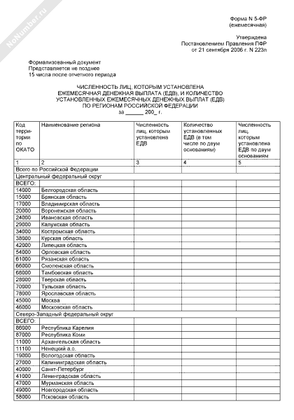 - 3904Численность лиц, которым установлена ежемесячная денежная выплата (ЕДВ), и количество установленных ежемесячных денежных выплат (ЕДВ) по регионам Российской Федерации. Форма № 5-ФР (ежемесячная)