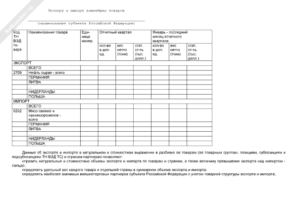 - 3911Экспорт и импорт важнейших товаров субъекта Российской Федерации. Форма № 2-ТС (регион)