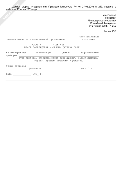 - 3913Эскиз к акту места повреждения изоляции (утечки газа). Форма № 15Э