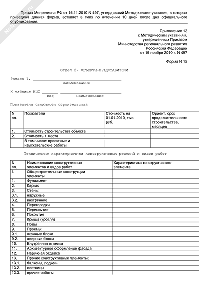 - 3920Оформление таблиц сборника норматива цены строительства. Отдел 2 «Объекты-представители» (форма № 15)