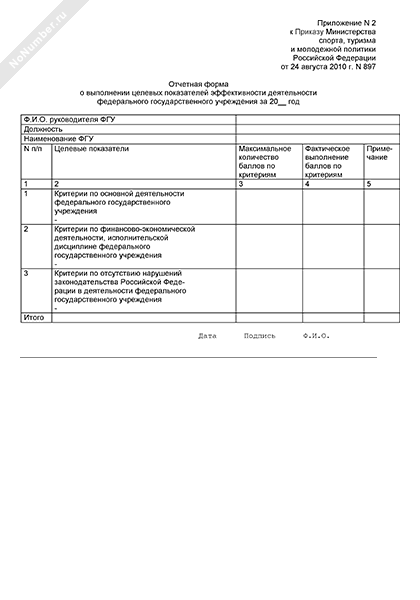 - 3919Отчетная форма о выполнении целевых показателей эффективности деятельности федерального государственного учреждения, подведомственного Минспорттуризму РФ