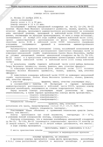 - 3933Примерная форма протокола осмотра места происшествия при проведении административного расследования по факту недостачи горючего в войсковой части