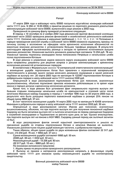 - 3929Примерная форма рапорта об обнаружении материального ущерба в войсковой части