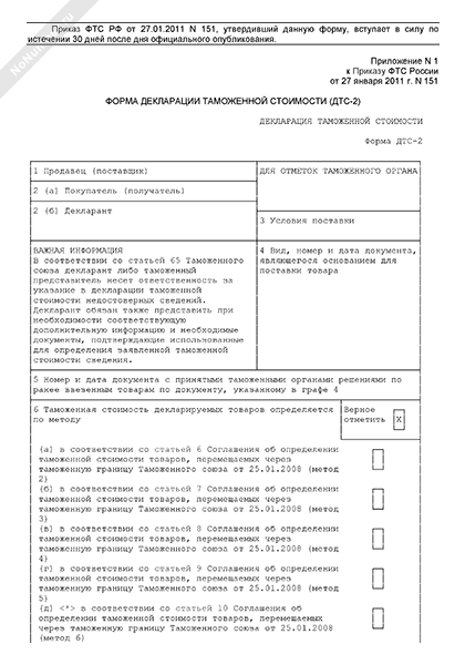 - 3977Форма декларации таможенной стоимости (форма № ДТС-2)