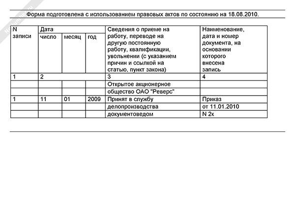 - 3979Форма записи в трудовой книжке о приеме работника на работу