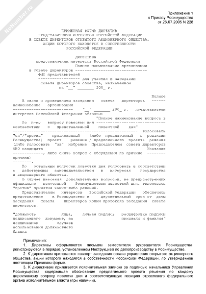 - 393Примерная форма директив представителям интересов Российской Федерации в совете директоров открытого акционерного общества, акции которого находятся в собственности Российской Федерации