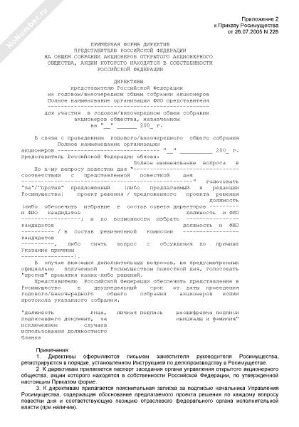 - 394Примерная форма директив представителю Российской Федерации на общем собрании акционеров открытого акционерного общества, акции которого находятся в собственности Российской Федерации