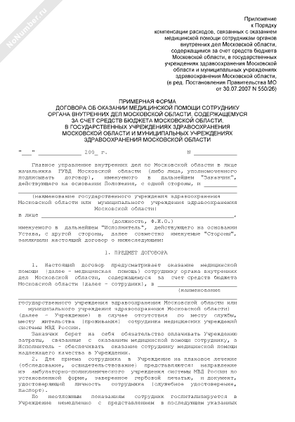 - 391Примерная форма договора об оказании медицинской помощи сотруднику органа внутренних дел Московской области, содержащемуся за счет средств бюджета Московской области, в государственных Учреждениях здравоохранения Московской области и муниципальных учреждениях здравоохранения Московской области