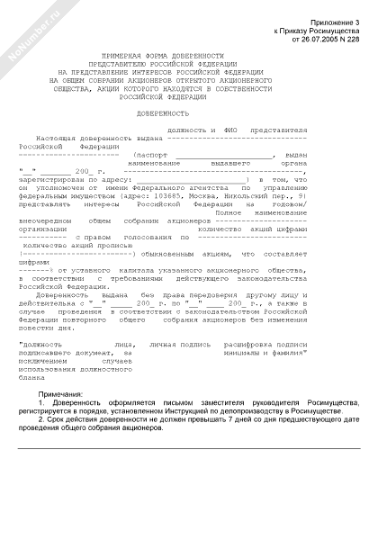 - 395Примерная форма доверенности представителю Российской Федерации на представление интересов Российской Федерации на общем собрании акционеров открытого акционерного общества, акции которого находятся в собственности Российской Федерации