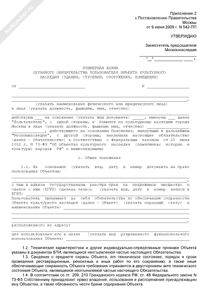 - 389Примерная форма охранного обязательства пользователя объекта культурного наследия (здания, строения, сооружения, помещения) города Москвы