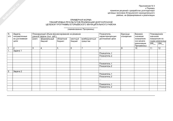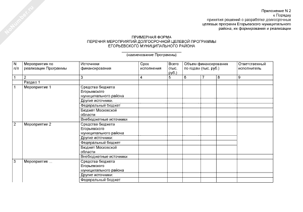 - 383Примерная форма перечня мероприятий долгосрочной целевой программы Егорьевского муниципального района Московской области