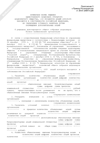 - 397Примерная форма решения единственного акционера открытого акционерного общества, 100 процентов акций которого находится в собственности Российской Федерации, об увеличении уставного капитала путем размещения дополнительных акций