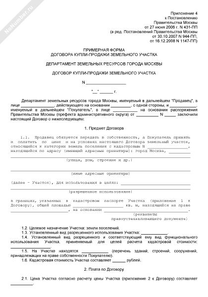 - 424Примерная форма договора купли-продажи земельного участка, относящегося к категории земель поселения