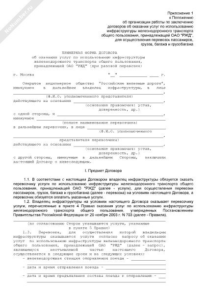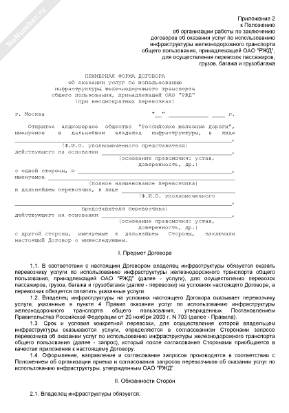 - 422Примерная форма договора об оказании услуг по использованию инфраструктуры железнодорожного транспорта общего пользования, принадлежащей ОАО «РЖД» (при неоднократных перевозках)