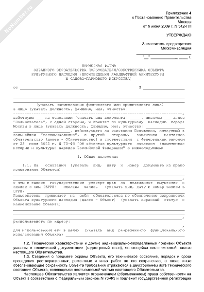 - 437Примерная форма охранного обязательства пользователя/собственника объекта культурного наследия (произведения ландшафтной архитектуры и садово-паркового искусства) города Москвы