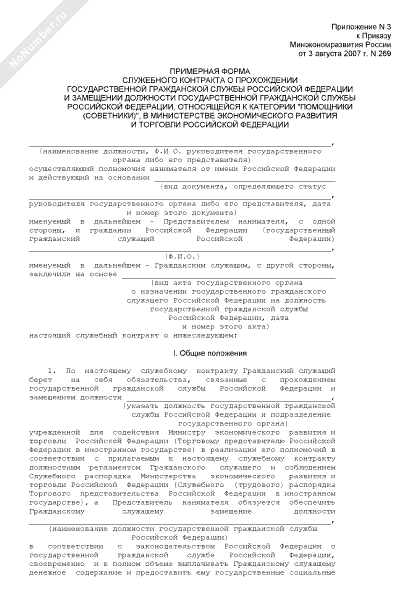 - 430Примерная форма служебного контракта о прохождении государственной гражданской службы Российской Федерации и замещении должности государственной гражданской службы Российской Федерации, относящейся к категории «помощники (советники)», в Министерстве экономического развития и торговли Российской Федерации