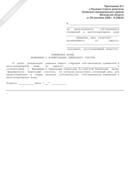 - 434Примерная форма заявления о формировании земельного участка, на котором расположены многоквартирный дом и иные входящие в состав такого дома объекты недвижимого имущества в городе Ногинске Московской области