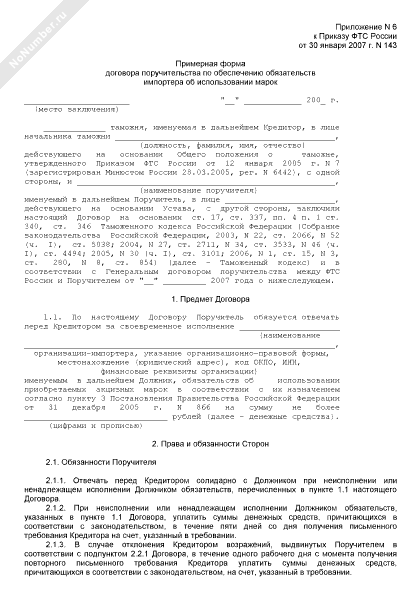 - 454Примерная форма договора поручительства по обеспечению обязательств импортера об использовании марок