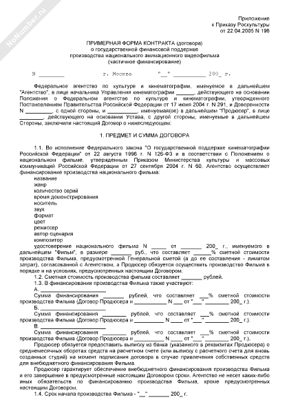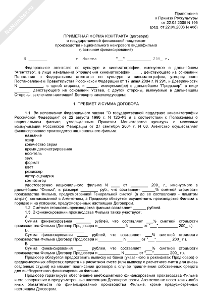 - 448Примерная форма контракта (договора) о государственной финансовой поддержке производства национального анимационного видеофильма (частичное финансирование)