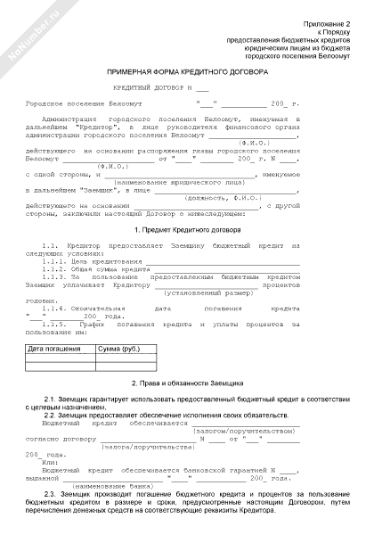 - 442Примерная форма кредитного договора на предоставление бюджетного кредита администрацией городского поселения Белоомут Луховицкого муниципального района юридическому лицу