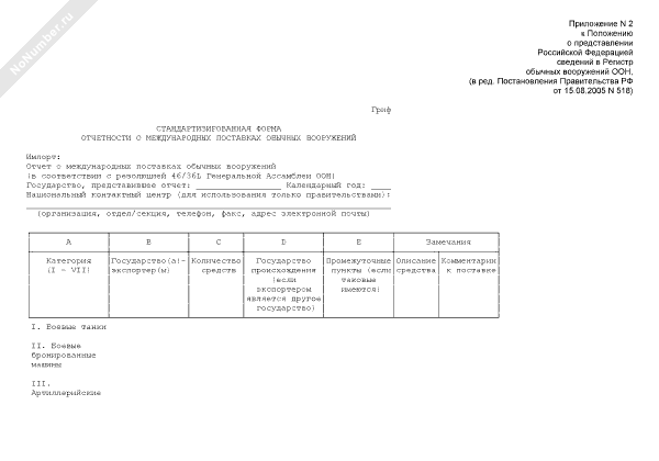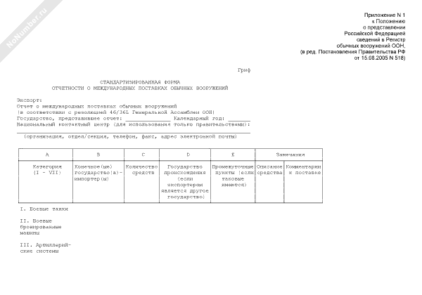 - 666Стандартизированная форма отчетности о международных поставках обычных вооружений (экспорт)
