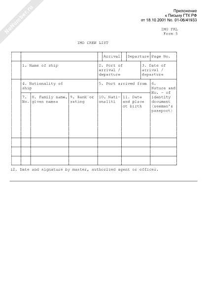 - 673Судовая роль. форма № 5 (ИМО фал) (на английском языке)