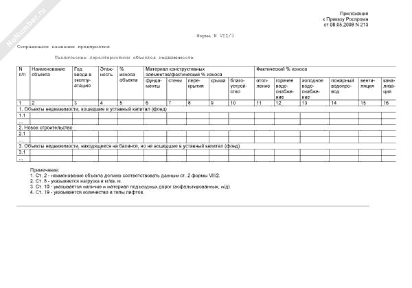 - 680Технические характеристики объектов недвижимости предприятия, находящегося в сфере ведения и координации Роспрома. Форма № VII/3