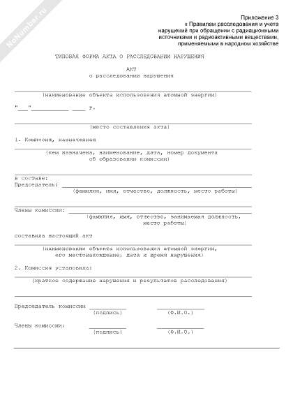- 683Типовая форма акта о расследовании нарушения на объекте использования атомной энергии