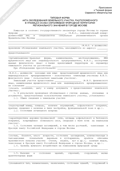 - 685Типовая форма акта обследования земельного участка, расположенного в границах особо охраняемой природной территории регионального значения в городе Москве