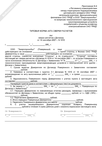 - 687Типовая форма акта сверки расчетов (приложение к договору технологического присоединения энергопринимающих устройств к электрической сети ОАО «РЖД»)