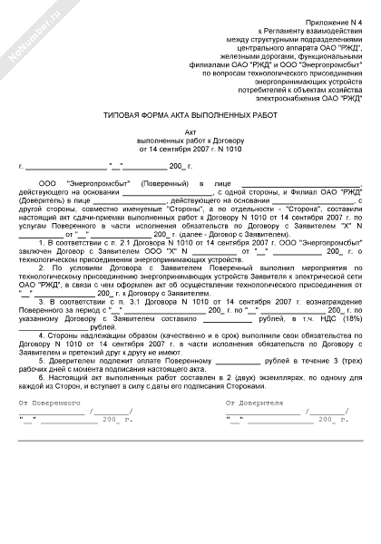 - 686Типовая форма акта выполненных работ (приложение к договору технологического присоединения энергопринимающих устройств к электрической сети ОАО «РЖД»)