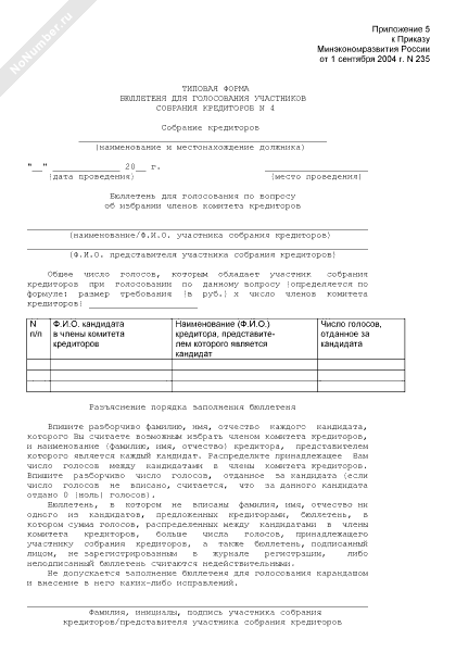 - 694Типовая форма бюллетеня для голосования участников собрания кредиторов (форма № 4)