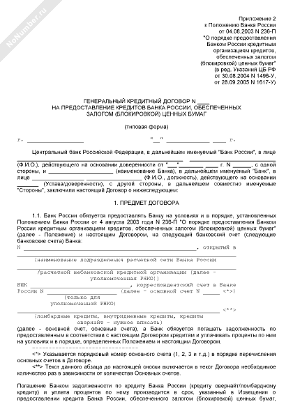 - 700Типовая форма генерального кредитного договора на предоставление кредитов Банка России, обеспеченных залогом (блокировкой) ценных бумаг