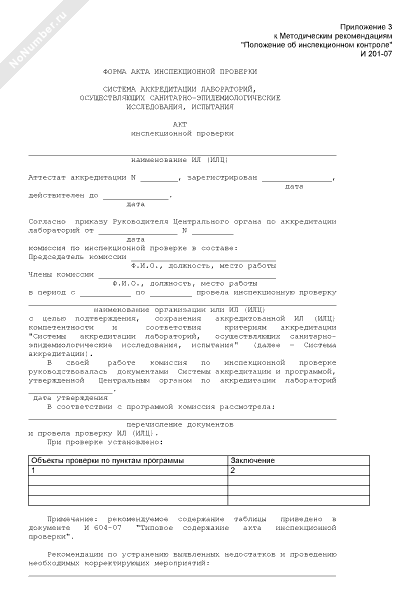 - 898Форма акта инспекционной проверки Системы аккредитации лабораторий, осуществляющих санитарно-эпидемиологические исследования, испытания