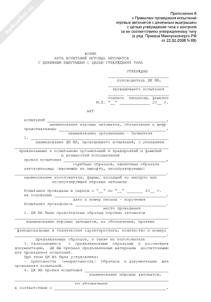 - 900Форма акта испытаний игровых автоматов с денежным выигрышем с целью утверждения типа и контроля за их соответствием утвержденному типу