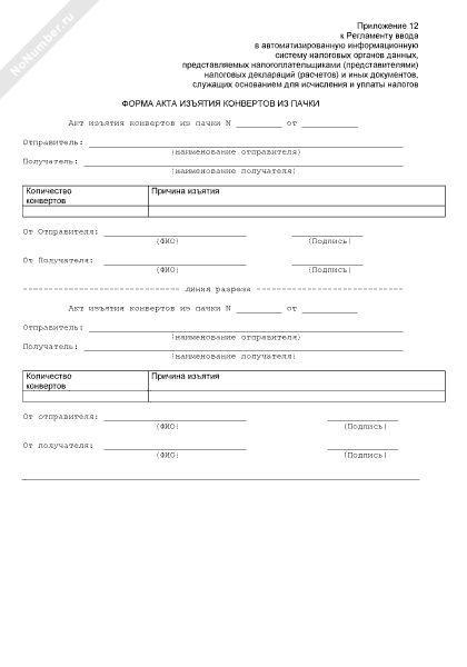 - 895Форма акта изъятия конвертов из пачки документов, представленной в инспекцию ФНС России, выполняющую функции централизованной обработки данных