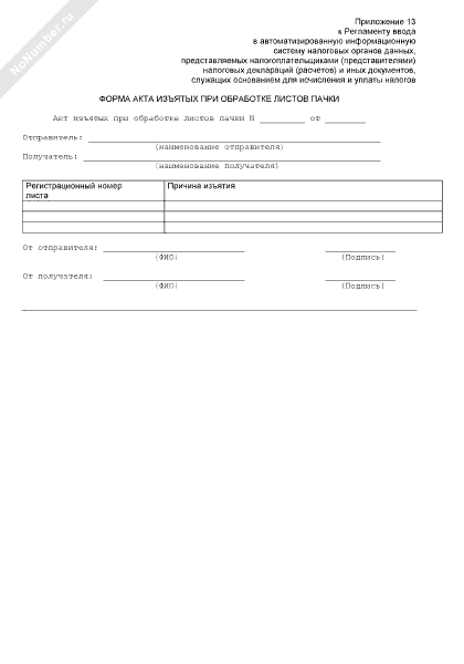 - 896Форма акта изъятых при обработке листов пачки документов, представленной в инспекцию ФНС России, выполняющую функции централизованной обработки данных