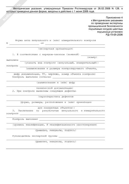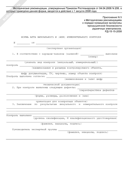 - 884Форма акта визуального и (или) измерительного контроля подъемного сосуда при проведении экспертизы промышленной безопасности подъемных сосудов шахтных подъемных установок