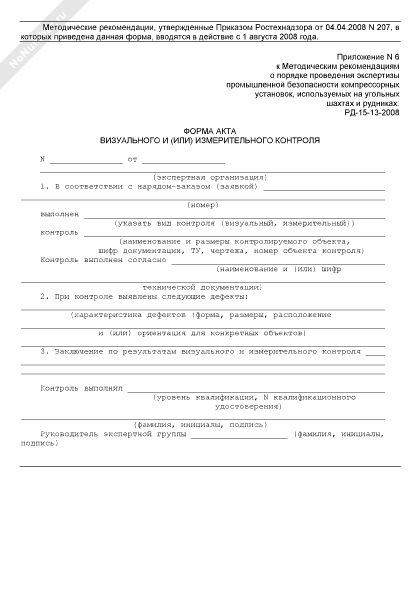 - 885Форма акта визуального и (или) измерительного контроля компрессорной установки, используемой на угольных шахтах и рудниках