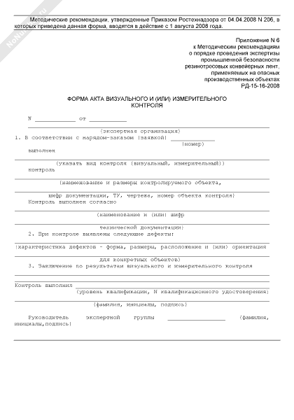 - 883Форма акта визуального и (или) измерительного контроля резинотросовой ленты, применяемой на опасном производственном объекте