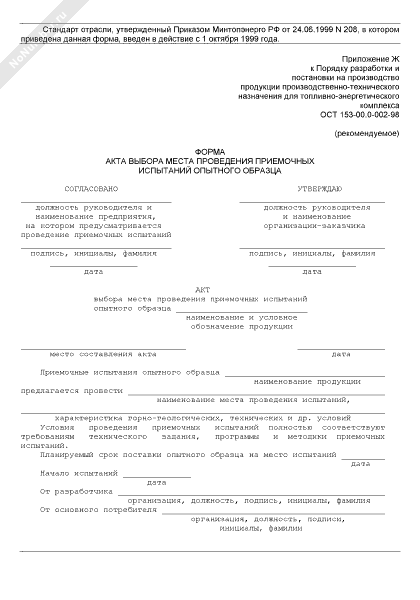- 888Форма акта выбора места проведения приемочных испытаний опытного образца продукции производственно-технического назначения для топливно-энергетического комплекса
