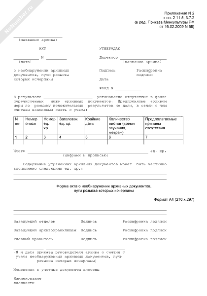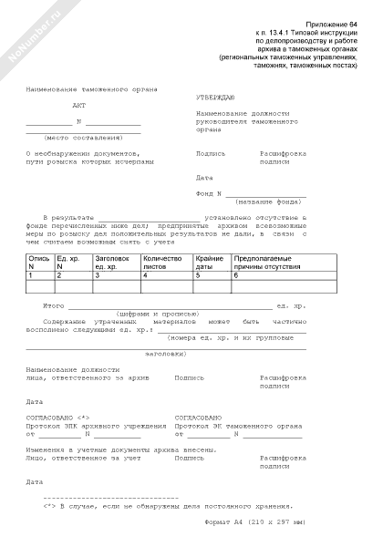 - 952Форма акта о необнаружении дел, пути розыска которых исчерпаны