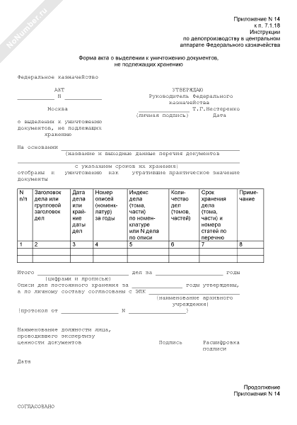 - 945Форма акта о выделении к уничтожению документов Федерального казначейства, не подлежащих хранению