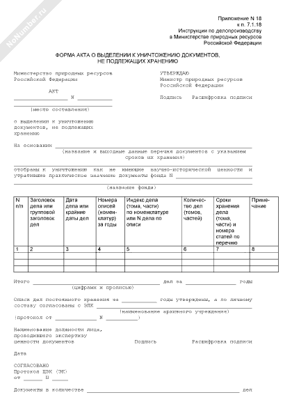 - 948Форма акта о выделении к уничтожению документов, не подлежащих хранению в Министерстве природных ресурсов Российской Федерации