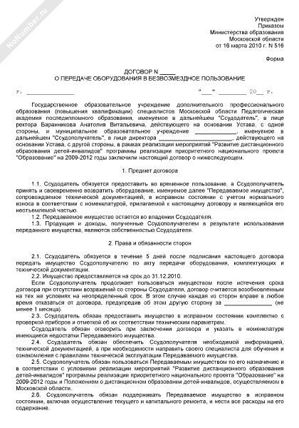 - 1332Форма договора между Педагогической академией и общеобразовательным учреждением по передаче оборудования в безвозмездное временное пользование для оснащения рабочих мест детей-инвалидов и педагогических работников в Московской области