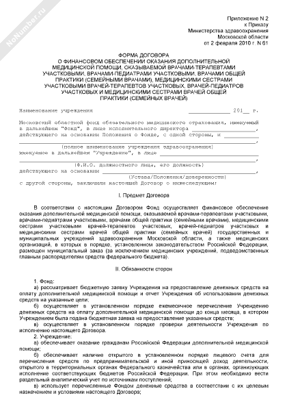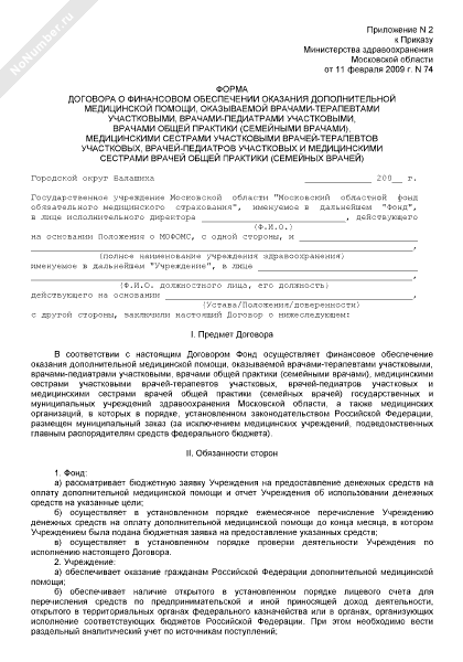 - 1326Форма договора о финансовом обеспечении оказания дополнительной медицинской помощи, оказываемой врачами-терапевтами участковыми, врачами-педиатрами участковыми, врачами общей практики (семейными врачами), медицинскими сестрами участковыми врачей-терапевтов участковых, врачей-педиатров участковых и медицинскими сестрами врачей общей практики (семейных врачей) на территории Московской области