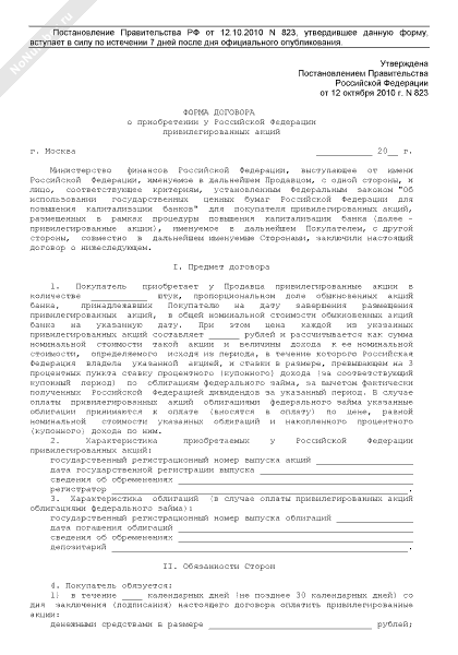 - 1334Форма договора о приобретении у Российской Федерации привилегированных акций